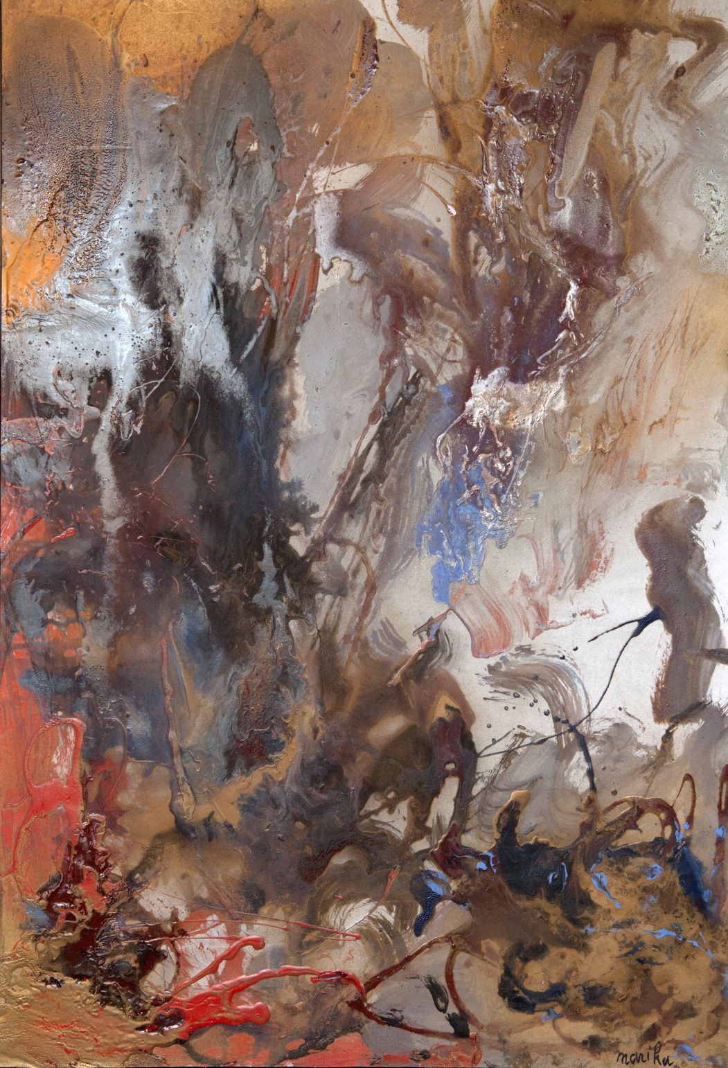Inspiration Comprendre les résonances Accepter les maux. Entendre le poids du silence. Reconnaître la douleur l'apaiser par des couleurs huile sur toile 27/31 Collection particulière